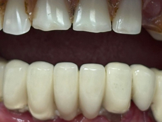 על סמך הבדיקה הקלינית והרנטגנית הוכנה תוכנית טיפול. בוצעו הסרת הגשר, עקירת השיניים בלסת התחתונה, התקנת 6 שתלים של חברת MIS (ישראל) ומסירת עבודה זמנית מוברגת כמה שעות לאחר ההשתלה.
